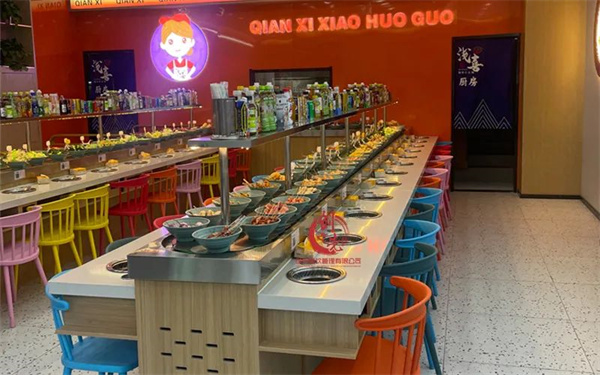 旋轉小火鍋店麵的布局,主要分為前廳和後廚兩大部分,前廳就是顧客就餐區域,後廚則關係到出餐效率。合理的店麵布局可以提高經營率,降低成本,提升顧客的就餐體驗,一般來說,旋轉小火鍋店的布局,要遵循以下幾點。