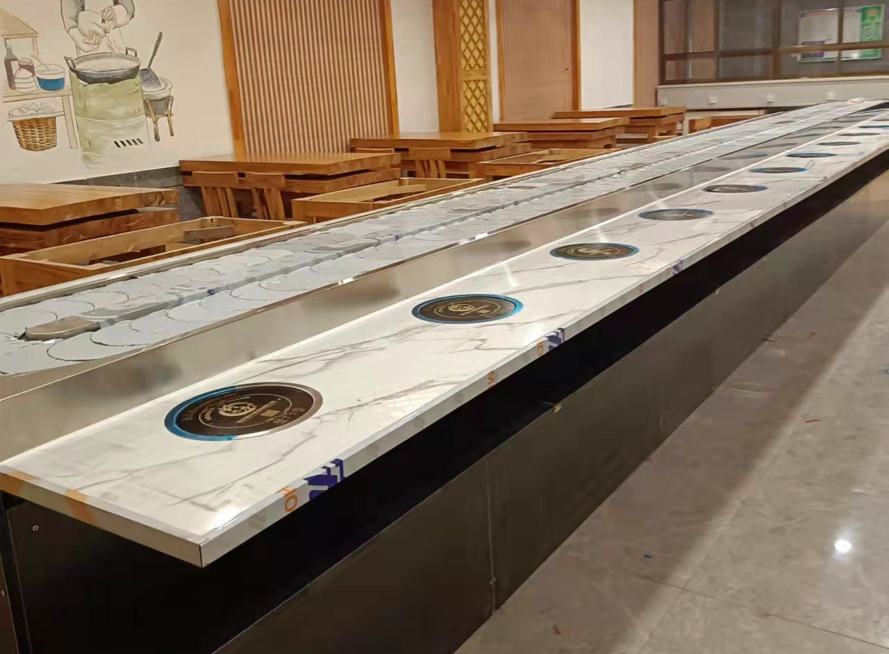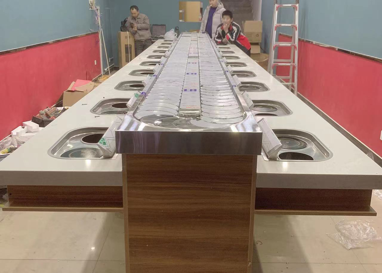 旋轉小火鍋抖音在线观看的配套有旋轉台(放置菜品的旋轉軌道)、台麵(相當於吃飯的桌麵,放置電磁爐的地方)、櫃體(放在旋轉台下麵)、小鍋(304不鏽鋼小鍋,耐煮不糊鍋)、電磁爐(純銅芯電磁爐,3年內免費換新)、椅子(多種樣式可供選擇)等,菏澤成人抖音APP大全餐飲管理有限公司可以為廣大創業者提供整套旋轉小火鍋抖音在线观看,免費上門安裝,提供優質底料蘸料。