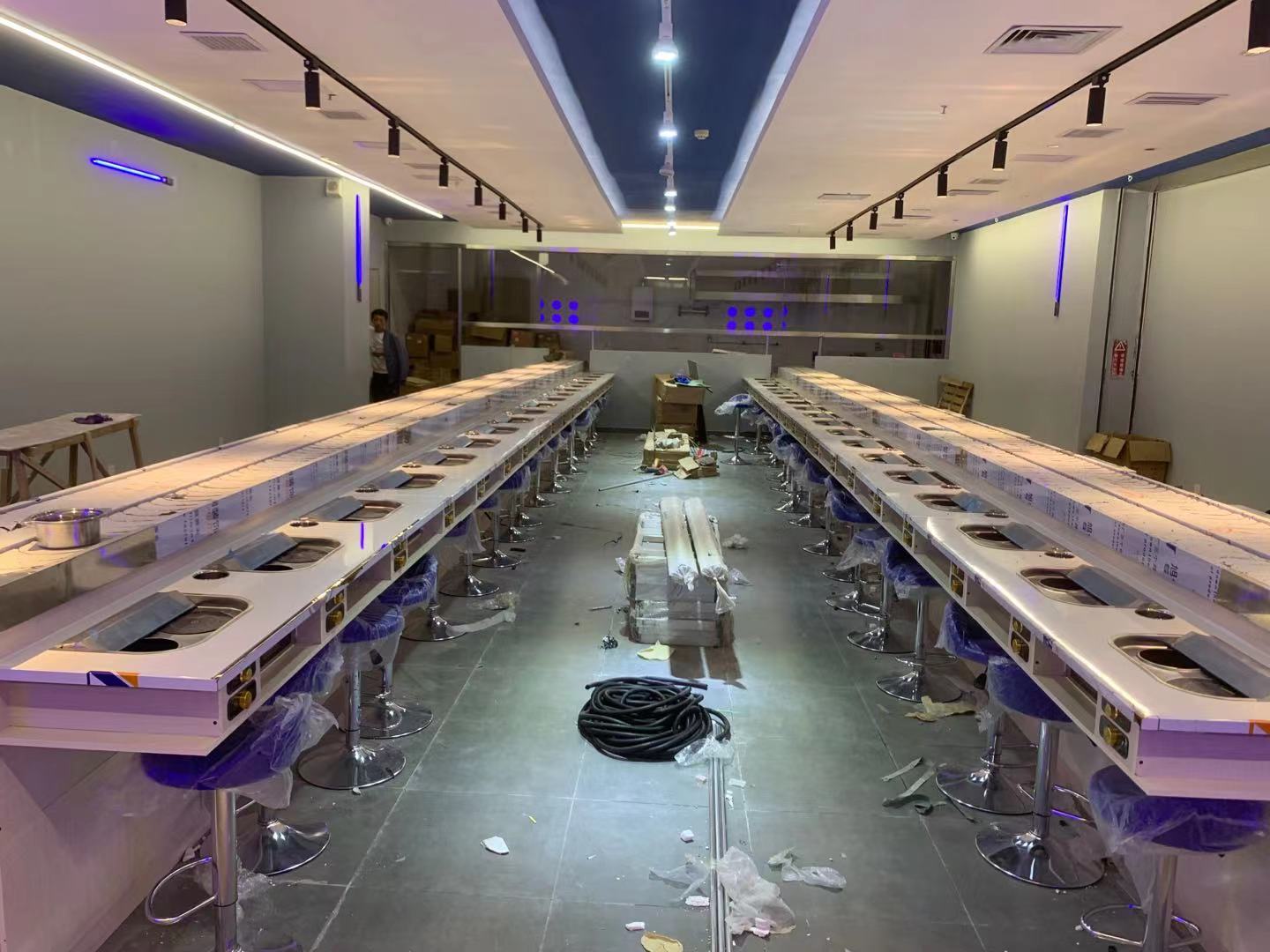 開一家旋轉火鍋店店內應該怎樣布局呢?應該盡量使用每一處空間,在人員活動線路上應該盡量選取直線,避免迂回的曲線,使顧客和工作人員在第一時刻抵達想要抵達的位置,其次,主要通道的寬度要顯著大於非必須通道。