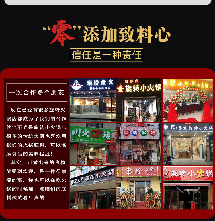 旋轉小火鍋專用底料,口味豐富,品種齊全。主要有:三鮮鍋底,微辣鍋底,麻辣鍋底,香辣鍋底,麻辣牛油鍋底,番茄鍋底,藤椒鍋底,酸湯牛油鍋底,酸菜鍋底,酸辣鍋底,老雞湯鍋底,野生菌湯鍋底,咖喱鍋底等